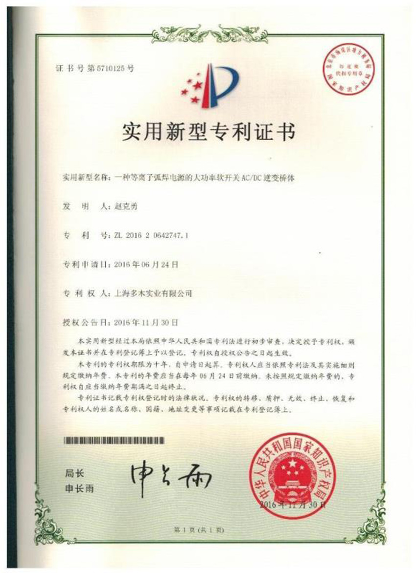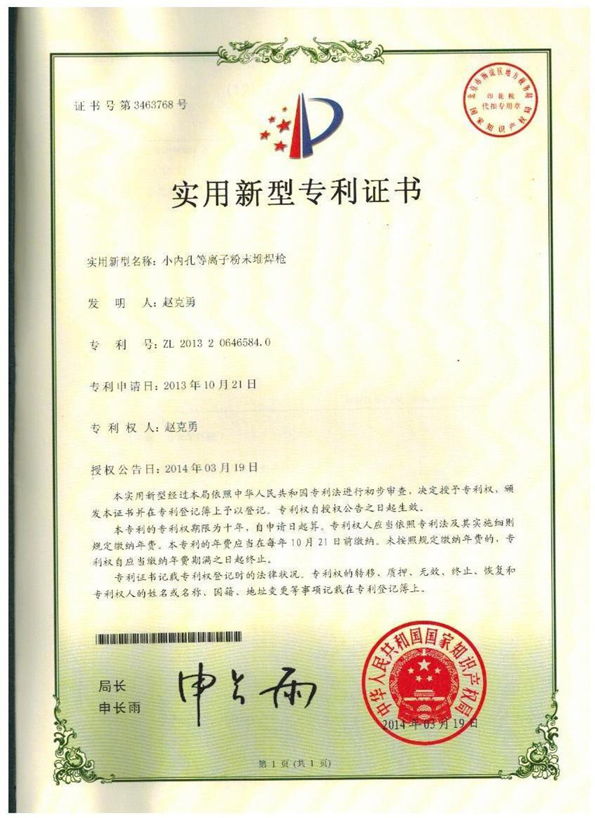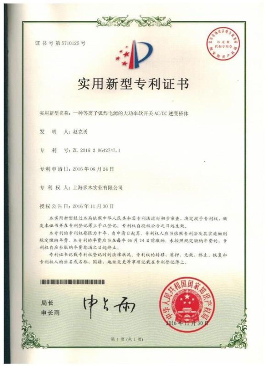 目前公司已經擁有十幾項國家專利, 軟件著作權包括:焊機、焊槍、自動化設備