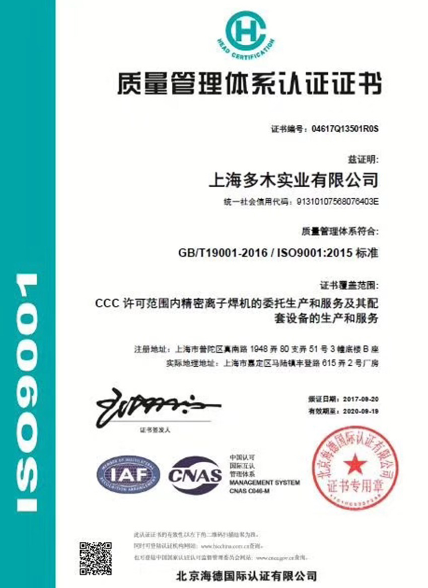公司成立上海多木機電科技有限公司,同年2月成立研發部門,專業從事等離子焊接電源研發